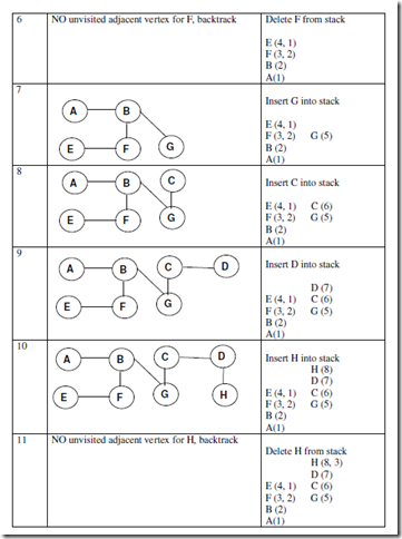 • A vertex is popped off the stack when it becomes a dead end, i.e., when there is no adjacent unvisited vertex